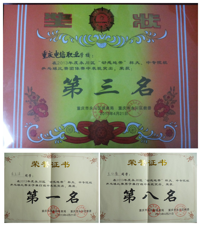 由永川区教委、永川区体育局联合主办;永川区乒乓球协会、重庆移动永川分公司承办的2013年度永川区“动感地带”杯大、中专院校乒乓球比赛于2013年4月19日——21日在永川移动公司全球通VIP乒乓球俱乐部如期举行。
