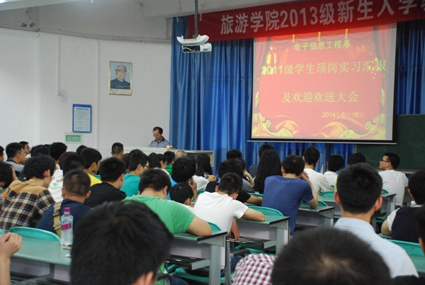 6月16日晚,beat365官网电子信息工程系在二教楼2600教室举行了2011级学生顶岗实习汇报及欢迎、欢送大会。电子信息工程系全体师生共330余人参加了大会,会议由该系副主任谢祥洲主持。