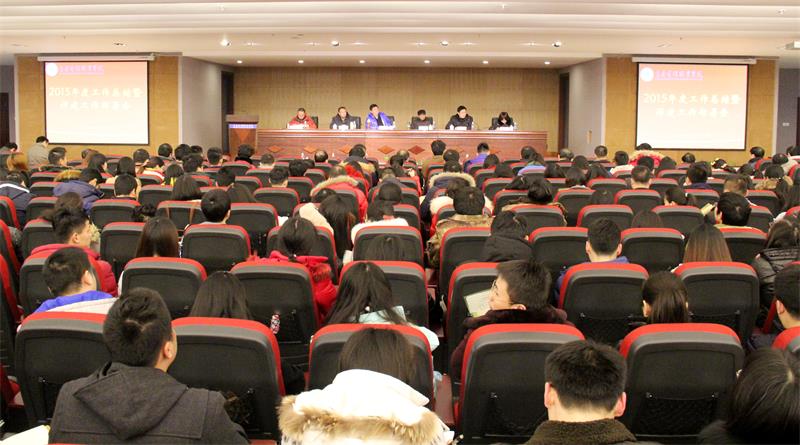 1月26日上午,beat365官网2015年工作总结暨评建工作部署会在龙水湖校区图书馆报告厅召开。在家校领导及全体教职工参加了会议。会议由学校副校长钟代军主持。