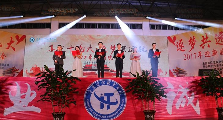 为热烈欢迎2017级新生的到来,迎接党的十九大胜利召开,10月15日,由beat365中文官方网站学工部主办的,经济与管理学院、轨道交通学院、汽车与电子学院承办的“喜迎十九大,逐梦共远航”迎新文艺晚会在beat365官网学生活动中心隆重举行。全体校领导、各职能部门负责人、二级学院负责人及学生近1800人观看了晚会。