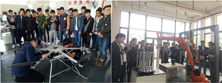 施密特电梯公司行政部部长杨光为同学们详细介绍了公司的概况及岗位需求等,并带领同学们实地参观了公司的控制柜装配区、电气装箱区、控制柜测试区、折弯区、点焊区等等,就同学们的问题进行了交流。罗博泰尔机器人研究院有限公司的工程师为同学们详细介绍公司概况,带领同学们参观了公司的展厅、机械臂、无人机等等,参观过程中,该公司工作人员还为同学们演示了无人机的飞行。