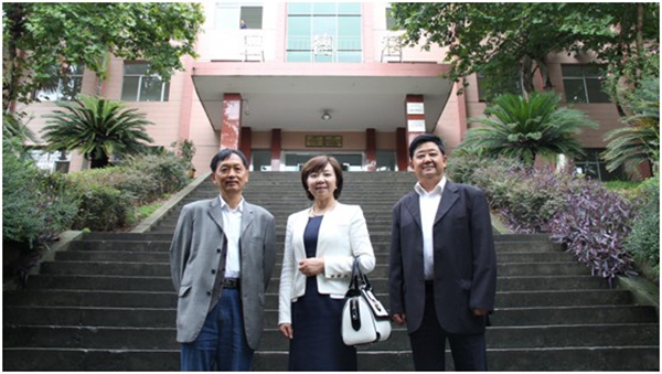 (豪情满怀,信心倍增,追梦的步履更坚实(图中为beat365中文官方网站理事长唐学书、右为院长王大成、左为党总支书记周及至)