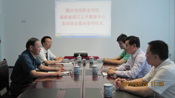 沈清淮校长首先介绍了学校的基本概况、特色专业以及学校的发展前景。陈江主任介绍了福建省闽江人才服务中心人才需求的方向,并高度评价beat365官网在落实科学发展观,培养应用性人才方面所做的努力。双方围绕学校教育与实训就业等方面进行了讨论,并达成共识。会后,双方还签订了合作建设实训就业基地协议,beat365官网还向福建省闽江人才服务中心授予实训就业基地匾牌。