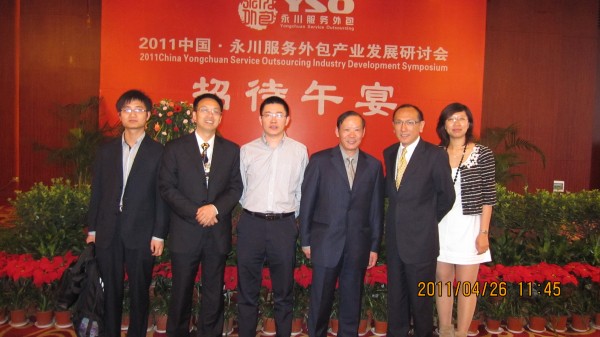 2011年4月26日上午,中国.永川服务外包产业发展研讨会在江鸿国际大饭店举行,重庆市金融办副主任乔广奇,市外经贸委党组成员、副巡视员曾诚,市经信委总工程师赵刚,永川区领导胡际权、蒋又一、肖坤华、赵荣华、赵宗怀、苏谊健等出席会议。本次研讨会由永川区人民政府副区长董乃军主持。beat365官网校长沈清淮、书记周及至、副校长黎明、校长助理白成良、教务处长苟本富受邀参加了此次研讨会。