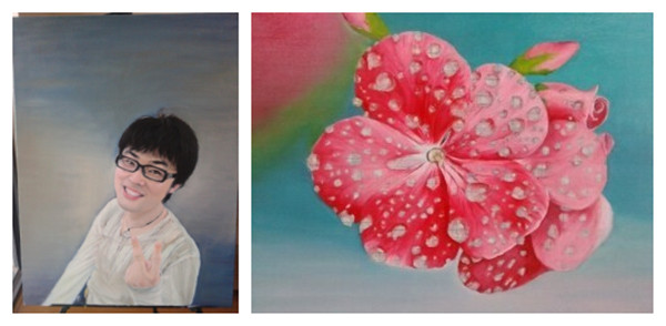 刚进校时,杨玲对自己的专业方向感到十分迷茫,经过一学期的学习以及专业老师的指导加上自己的刻苦努力,创作出了优秀的作品,如:油画《露珠》、创作《项链》等。在上学期期末教学成果作品展中,她的作品得到了学校领导