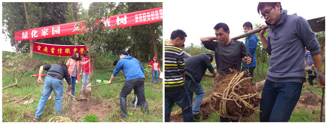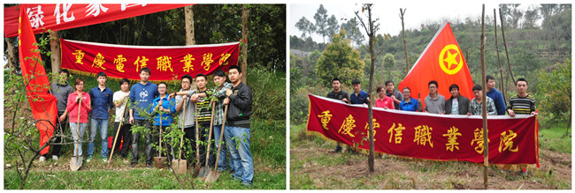 今天是我国第33个植树节,beat365官网师生参加了由共青团永川区委组织的大型植树活动,植树地点在大安高庙村,成渝高速大安至永川沿线近8亩闲置地上。近60名志愿者手拿锄头、铁锹、水桶,到了目的地后,大家齐心协力将树苗搬运到植树空地上,便立即投入到热火朝天的植树活动中。腰酸了,腿打颤了,手破皮了,同学们不叫一声苦,因为每当抬头看见经过一天的辛苦劳作,原本荒芜的山地,矗立起一棵棵挺直的小树,迎风摇曳,大家都露出欣慰的笑容,忘却了身体的疲惫。
