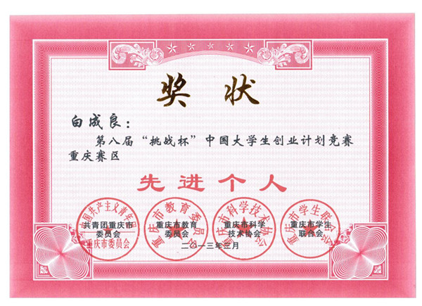 近日,我院收到重庆团市委相关文件,由共青团重庆市委、重庆市教育委员会、重庆市科学技术协会、重庆市学生联合会联合举办,西南政法大学承办的第八届“挑战杯”中国大学生创业计划竞赛中,我院被评为第八届“挑战杯”全国大学生创业计划竞赛重庆赛区优秀组织奖。学院副书记白成良教授和廖良刚老师被评为第八届“挑战杯”全国大学生创业计划竞赛活动“先进个人”。