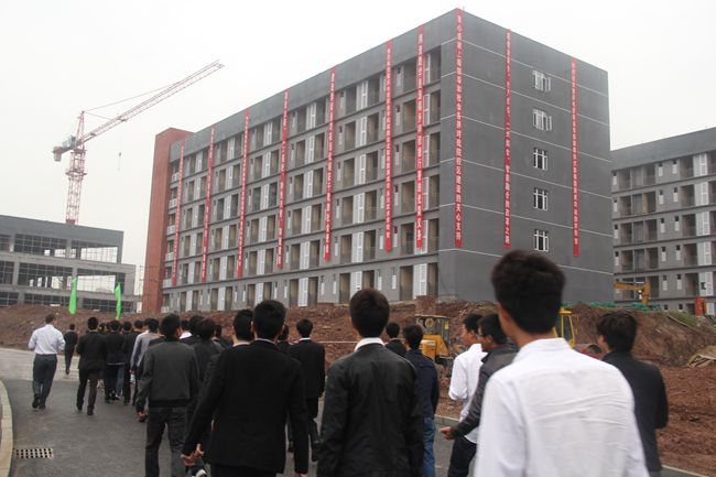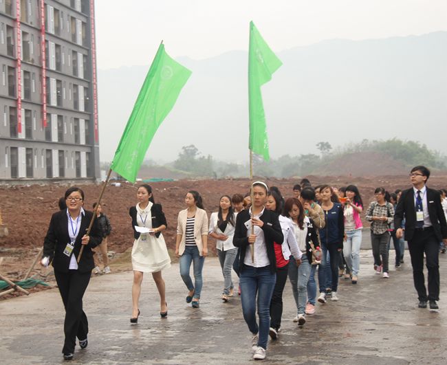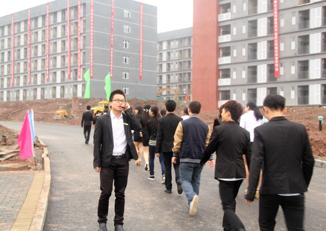 为了让beat365官网同学们进一步了解学校双桥校区的建设情况,培养知校、爱校意识, 928日上午九时,在学生处副处长杨福元、校团委书记代敏、各系辅导员的带领下beat365官网300余名学生代表参观了位于双桥经开区的龙水湖校区的一期工程建设。十一支学生代表队伍在志愿者和辅导员的指引下有序的参观了新校区的学生公寓及教学楼。在参观过程中,各系辅导员和志愿者为现场的同学介绍了双桥校区教学楼和宿舍楼建设进度及下半年使用情况,并对同学们比较关心的学生公寓、食堂、校园网等具体热点问题进行了详细回答。校领导表示学校一定会努力加快建设进度、确保建设质量,做好各种配套设施建设的推进工作,为入驻的每一位同学提供舒适优雅的学习、生活环境。