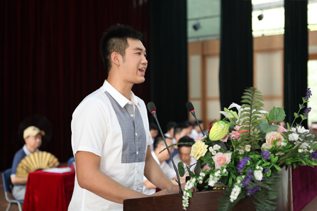 典礼上,校长沈清淮首先代表学校全体教职员工,向新同学表示热烈的欢迎,并对老师 和同学殷殷嘱托,提出了三点希望和要求:一是希望新同学尽快适应大学生活;二是希望新同学增强自 己本领;三是希望新同学严格要求自己,要按照高标准塑造自己。