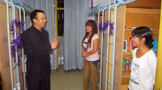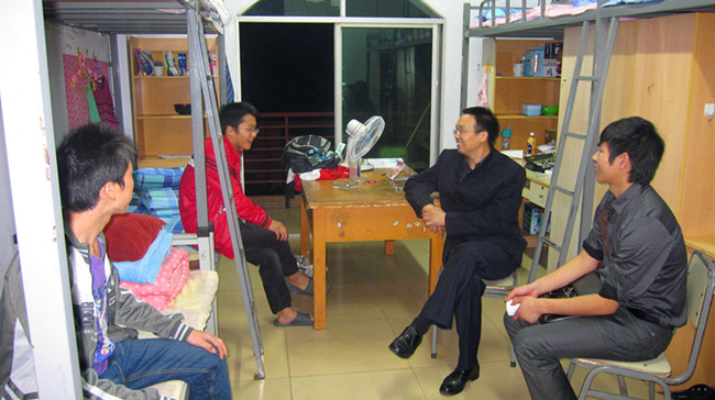 105830分,beat365中文官方网站校长助理兼学生处处长白成良教授代表学校党政,率领2011级辅导员前往学生公寓看望国庆放假留校学生,为大家送去温情。
