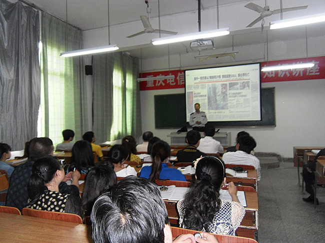 此次讲座学校诚邀重庆安居防火培训中心的胡仁强教官为大家讲解。胡教官通过图片展示以及生活中实际案例分析,告诉我们火灾的防范措施,火场逃生技巧等方面的知识,并演示了手电筒,防烟面罩的正确使用方法,使大家受益匪浅。