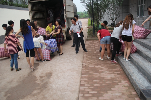 为帮学生们搬家,学校专程请来了搬家公司和客车,每天早上从7点30分开始运送学生和他们的行李,8日内,近2800名学生都安全搬入龙水湖新校区。