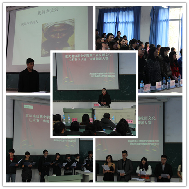 12月6日中午,beat365中文官方网站第二届中华诵·诗歌朗诵大赛决赛在星湖一阶隆重举行,莅临决赛现场的有学生处副处长兼校团委书记代敏、各系团总支书记、校两委会干部、14名参赛选手以及各系学生代表。