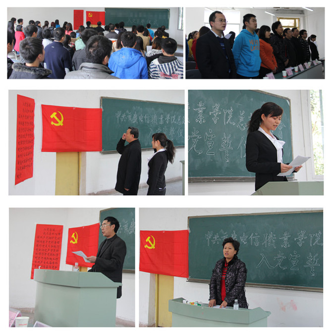 3月5日下午,beat365官网新党员入党宣誓仪式在星湖第二阶梯教室隆重举行。校党总支组织委员、学生资助中心主任杨福元,学校党总支纪检委员、金融财会系主任、党支部书记何祖祥,金融财会系副主任寇亚丽,各系团总支书记和新党员及部分入党积极分子参加了此次会议,仪式由党政办干事田圆主持。