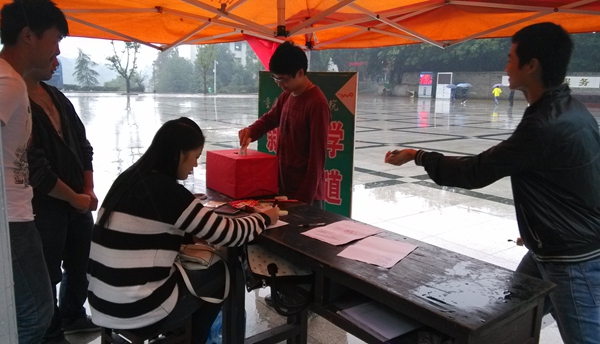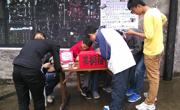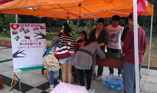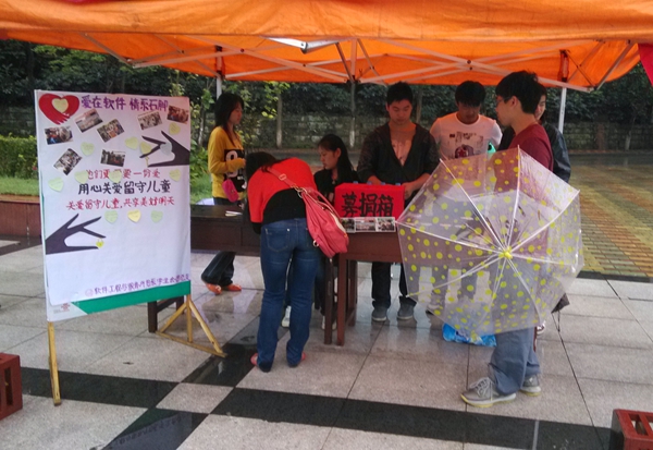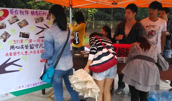 上午7点,天空中飘着蒙蒙细雨,软件工程系的学子开始了他们的募捐活动。路过的师生纷纷过来观看本次募捐的展板宣传,并不时的询问帮扶对象的相关情况。各位爱心人士都伸出热情的双手,献出了自己的一份爱心,同时写下了心中最感人的祝愿。活动中,志愿者们一直保持灿烂的笑容,对前来募捐的爱心人士表示真诚的感谢。在活动的过程中感受到了助人为乐的幸福,给石脚小学的留守儿童送去一份温暖,一份关爱与快乐,让他们度过一个快乐的国庆节。