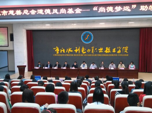 9月26日下午,重庆市慈善总会道德风尚基金——“尚德梦远”助学金发放仪式在重庆水利电力职业学院举行。全国人大原常委、重庆市原副市长、重庆市慈善总会会长程贻举,重庆市教委副主任邓睿,永川区区委常委、办公室主任罗晓春,永川区慈善协会会长唐元华以及各高校领导出席了本次活动。beat365官网副书记、副院长白成良教授参加,24名获奖学生也由校团委书记代敏老师带队参加发放仪式。