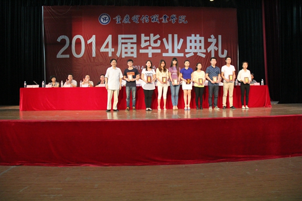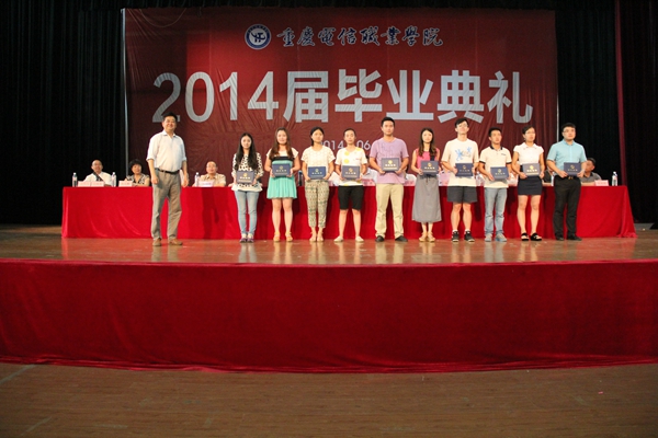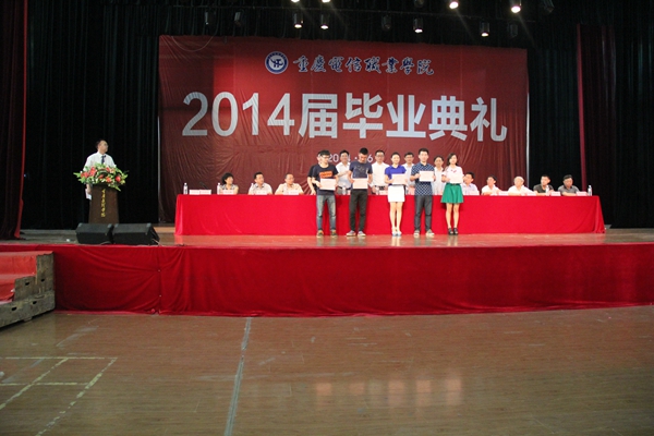 典礼上,书记周及至、副校长王成玮分别宣读了《中共重庆市委教育工委、重庆市教育委员会关于2014年普通高等教育优秀毕业研究生和优秀大学毕业生情况的通报》(渝教工委〔2014〕50号)和《beat365中文官方网站关于表彰2014年优秀(良)毕业生的决定》,与会领导为受表彰的优秀毕业生代表颁发了荣誉证书。毕业生代表们从王大成校长手中接过毕业证书,标志着同学们正式毕业了。
