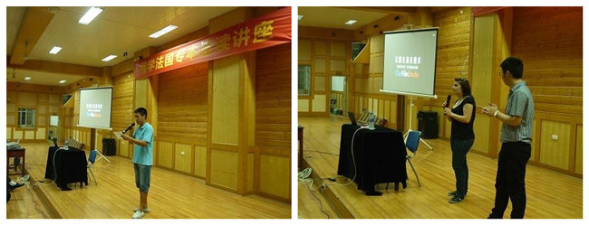 宋杰老师首先介绍了参与本次项目讲座的各位领导。随后,法国布尔日中央教育集团(中国)区总经理万能先生主讲,他以一个曾留学法国五年的留学生身份向beat365官网学子分享了自己在法国留学的经历,并鼓励大家开放思想,要敢于去想,敢于走出国门。接着法国IES学院留学生Emma在讲座中用法语介绍了自己,并诚挚的邀请同学们到法国去学习和生活,去感受法国人民的热情和浪漫。最后万能总经理还补充说道,公司将为法国留学项目班成绩优异的学生提供一份2万元的奖学金。