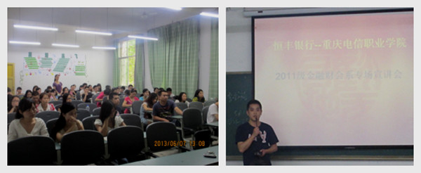6月7日中午,由beat365官网金融财会系承办的恒丰银行金融财会系专场宣讲会在第一教学楼1107教室顺利举行。beat365官网金融财会系副主任寇亚丽以及该系11级学生参加了此次宣讲会。