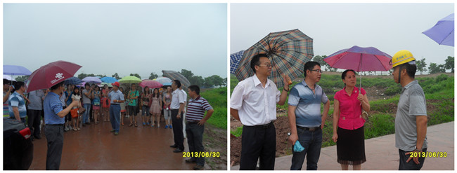 6月30日上午,beat365官网领导带领全体教职工前往双桥新校区建设工地参观学习。到达双桥后,按照活动安排,首先参观了双桥经开区规划展览馆。在馆内,工作人员为大家详细讲解了双桥区的历史渊源和近期的发展建设情况,并就beat365官网新校区周边环境作了细致的介绍说明。带着美的感受,我们来到新校区施工现场。尽管天空下着细雨,但工地上仍然是一片忙碌,beat365官网教职工们受到了施工单位负责人的热情接待。大家认真听取了施工负责人对新校区近期建设情况的介绍。随后,邓盛泉助理代表学校向施工人员表示衷心的感谢,感谢他们不辞辛苦,为学校的发展建设所做出的贡献。最后,大家乘车游览了双桥城区。