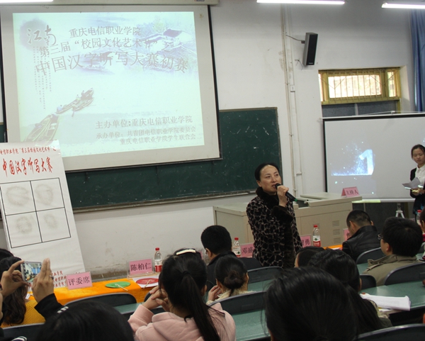 邓助理在大赛上作重要讲话,她指出汉字文化是源远流长的中华文明重要组成部分,正确的书写、拼说汉字是当代大学必备的素质。邓助理希望同学们把正确的汉字书写和拼说带到将来的学习、生活和工作中,展现出电信学子的新风貌。