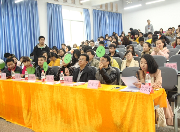 比赛中,念词人铿锵有力的发音和现场观众此起彼伏的掌声,把现场推向一个又一个高潮。经过一个多小时的激烈比拼,管理工程系、金融财会系、艺术工程系的参赛选手晋级决赛。