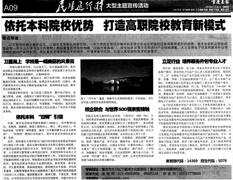 上一篇:中国新闻网:重庆首家面向服务外包产业培养人才高职院校挂牌