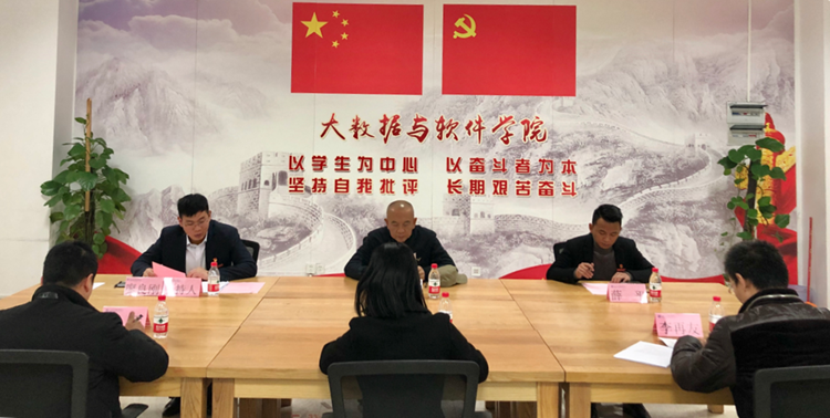 12月13日中午,大数据与软件学院党支部在图书馆B202会议室召开“不忘初心、牢记使命”主题教育专题组织生活会暨民主评议党员大会,学校执行校长李渤川同志参加会议,学院全体教职工党员参加会议,会议由学院党支部书记廖良刚主持。