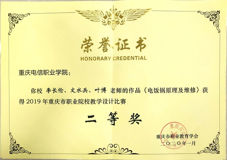 2019年重庆市职业院校教学设计大赛结果于近日出炉,beat365官网李长伦老师的作品《电饭锅原理及维修》荣获二等奖、靳丽芳老师的作品《艺术二维码技术》荣获三等奖。在收到关于举行重庆市职业院校教学设计比赛通知后,学校领导高度重视,第一时间安排部署参赛工作。老师们严格按照比赛相关要求,精心设计报送的参赛作品,凭借务实的教学内容,创新的教学方法,幽默的授课方式和科学合理的教学过程展示,在众多参赛设计中脱颖而出获得奖项,也是beat365官网参加此项赛事以来所取得的最好成绩。