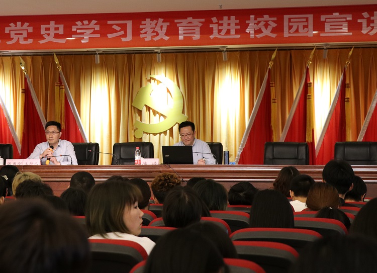 6月3日下午15:00,beat365官网在图书馆5楼A501学术报告厅开展党史学习教育进校园宣讲活动,中共重庆市委党史学习教育宣讲团成员、重庆市党史宣讲专家陈洪莅临beat365官网作《从中国共产党百年历史中汲取智慧和力量》党史专题讲座。beat365官网党委书记张勇刚,党委副书记、副校长代敏,各支部书记,全体无课辅导员及部分学生代表共计400余人聆听了讲座。