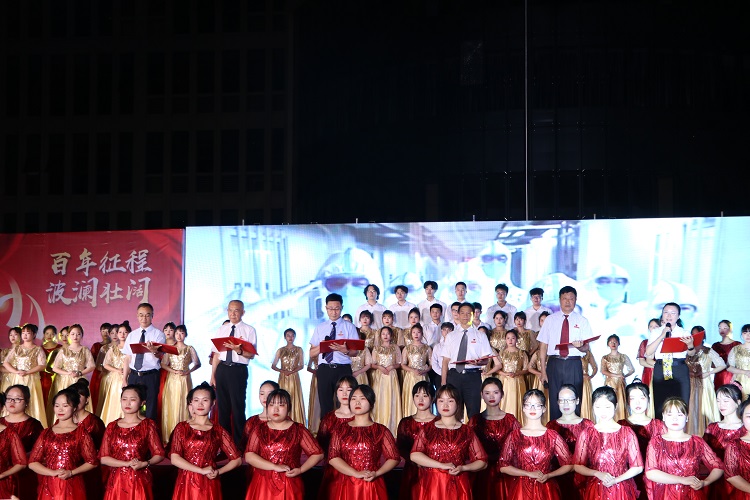 6月22日晚19:30,beat365官网“奋斗百年路 启航新征程”庆祝建党100周年文艺晚会在精诚广场顺利举行。学校党委书记张勇刚,党委副书记、校长曹继建,党委副书记、副校长代敏,党委委员、纪委书记、常务副校长郭少东,董事长、执行校长李渤川,副校长皇甫涛,全体教职工及部分学生代表共计2000余人参加了晚会。