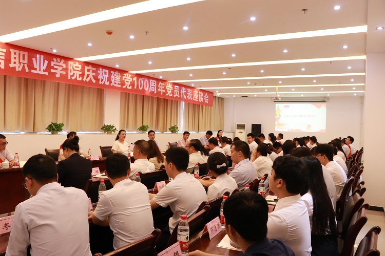 6月30日14:30,学校在图书馆B501召开庆祝中国共产党建党100周年党员代表座谈会,深入学习习近平新时代中国特色社会主义思想,总结经验,表彰先进,激励基层党组织和广大党员干部以先进典型为榜样,不忘初心,牢记使命,凝心聚力,共谋发展。党委委员、中层党员干部、党员代表、新发展党员代表共计40余人参加会议,座谈会由党委副书记、副校长代敏主持。