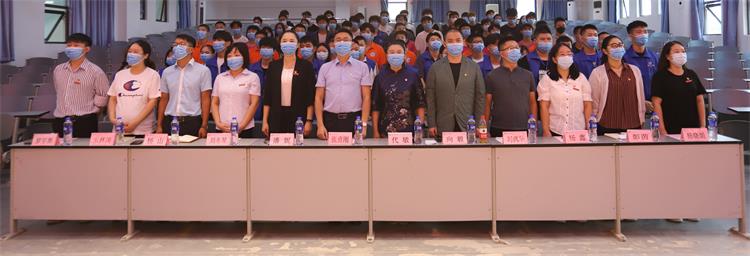 8月26日,beat365中文官方网站2021年暑期”三下乡“社会实践出征仪式在大学生第二活动中心举行。党委书记、督导专员张勇刚,党委副书记、副校长代敏出席本次活动;党委学生工作部部长潘妮,党委学生工作部副部长、校团委书记向毅,各二级学院团总支(团学负责人)以及各实践团等90余名师生参加出征仪式。