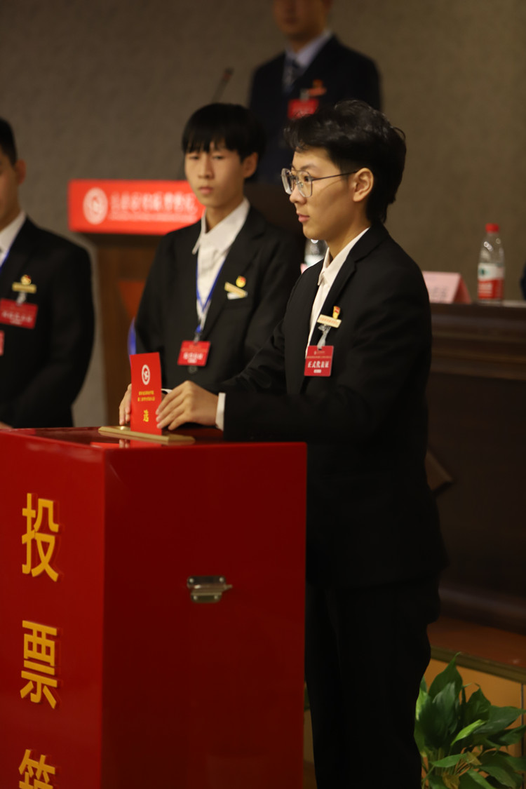 选举大会上,全体代表通过无记名投票选举的方式,秉承“公开、公平、公正”的选举原则,在大会监票员的监督和计票员的统计下对冯俊豪等4名学生进行选举投票。最终选举产生了校学生会第十一届主席团冯俊豪、叶思懿、彭涪陵3名成员。