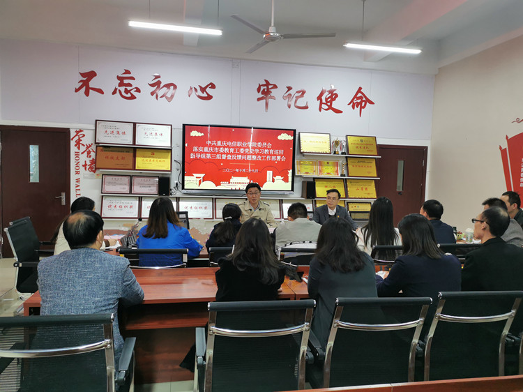 组织部副部长赵晓波就重庆市委教育工委党史学习教育巡回指导组第三组指导反馈意见进行了通报。党建科科长李鸿吉对下步工作如何整改进行了专项培训。(通讯员:李成涛)