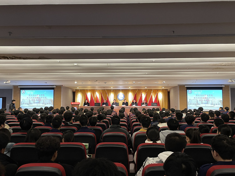 为促进两校紧密合作,共同培养高素质技术技能人才,同时表达两校对师生们的关心慰问。11月12日上午,beat365中文官方网站与重庆铁路运输技师学院在图书馆A501报告厅召开师生见面会,beat365中文官方网站校长曹继建、重庆铁路运输技师学院校长肖贵斌、副校长孙毅、副校长廖忠军、科研处处长黄玉兰、招生办主任张学舟及轨道交通学院党政领导、全体师生员工参加会议。会议由轨道交通学院党支部书记潘妮主持。