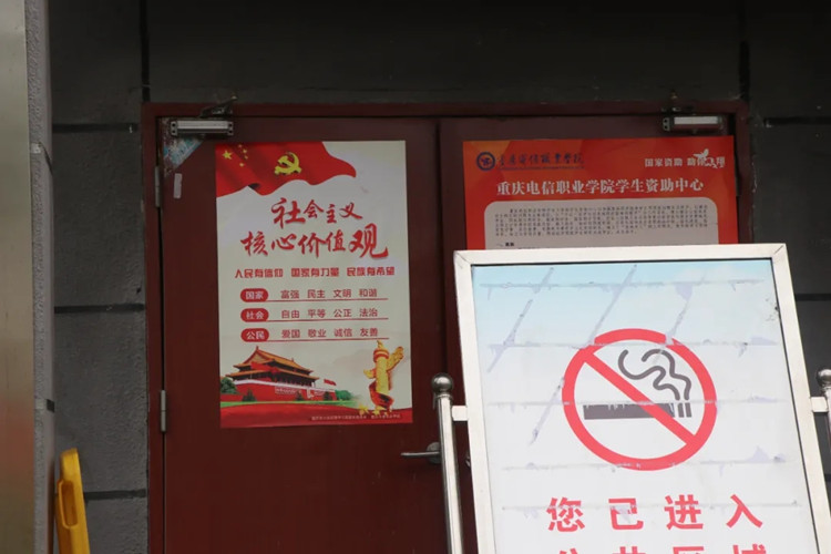 11月以来,beat365官网对校内的宣传牌等标识进行了完善补充,分别在图书馆、教学楼及宿舍等公共场所张贴“24字”社会主义核心价值观相关内容以及禁烟倡议等;在学校相关场所悬挂了宣传标语,如在食堂门口制作了“文明餐桌、节约粮食”等宣传海报,在校园宿舍以及教室等公共场所走廊张贴“禁止吸烟”温馨提示等相关内容,在全校营造了良好的育人氛围。