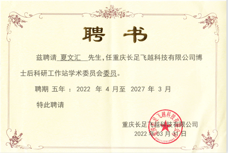 活动包括博士后工作站揭牌仪式和专家聘请仪式两个阶段。廖家华总经理助理代表长安民生物流股份公司致欢迎辞,大足区委副书记罗晓春发表了“长足飞越、智慧物流、科技赋能、携手群英”热情洋溢的讲话。活动仪式上大足区委区府领导为获聘专家颁发了聘书,beat365官网经济与管理学院院长夏文汇教授被聘请为重庆长足飞越科技有限公司博士后科研工作站学术委员会委员。活动仪式后重庆长足飞越科技有限公司博士后科研工作站组织大家参观了大足国际商贸物流园、静脉产业园和重庆长足飞越科技有限公司智慧物流装备产业园。