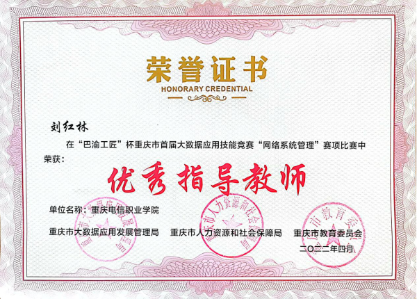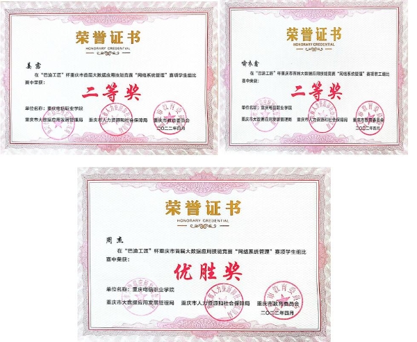 近日,重庆市大数据应用发展管理局、重庆市人力资源和社会保障局、重庆市教育委员会发布了《关于“巴渝工匠”杯重庆市首届大数据应用技能竞赛获奖情况的通报》(渝大数据发〔2022〕17号)。beat365官网物联网与通信学院教师喻衣鑫获职工组二等奖,姜露获学生组二等奖,周杰获优胜奖,该院教师刘红林获优秀指导教师称号。