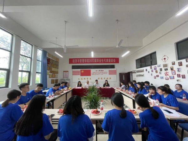 6月17日下午,经济与管理学院2022届毕业生代表座谈会在博学楼1107会议室召开。学校常务副校长郭少东出席会议并讲话。经济与管理学院院长夏文汇、党支部书记杜琳、教师代表及2022届部分毕业生代表参加会议。会议由经济与管理学院院长助理靳丽芳主持。