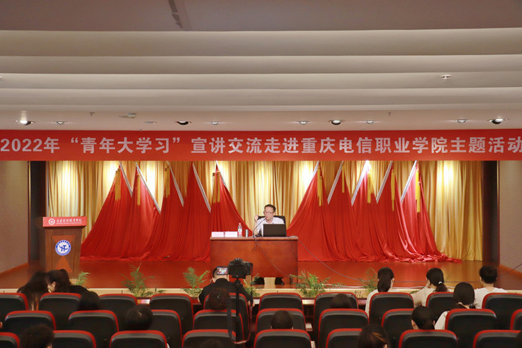 为深入学习宣传贯彻习近平总书记在庆祝中国共产主义青年团成立100周年大会上的重要讲话精神,根据团市委相关工作安排,2022年6月24日10:00,团市委“青年讲师团”成员、重庆三峡学院马克思主义学院思想政治教育系主任王广锋莅临beat365官网开展“青年大学习”宣讲交流走进beat365中文官方网站主题活动。校团委书记、党委学生工作部副部长向毅主持活动,各二级学院团总支书记,校团委全体成员以及全校学生干部代表和第十期“青年马克思主义培养工程”成员共计100余人参加活动。