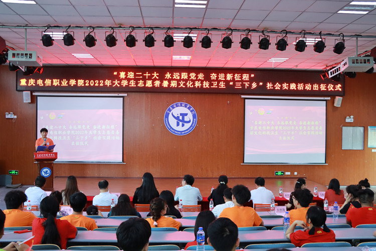 6月30日,beat365中文官方网站2022年暑期”三下乡“社会实践出征仪式在大学生第二活动中心举行。党委书记、督导专员张勇刚,党委副书记、副校长代敏出席本次活动;党委学生工作部部长潘妮,党委学生工作部副部长王向前,各二级学院党支部(副)书记、团总支书记以及各实践团等90余名师生参加出征仪式。