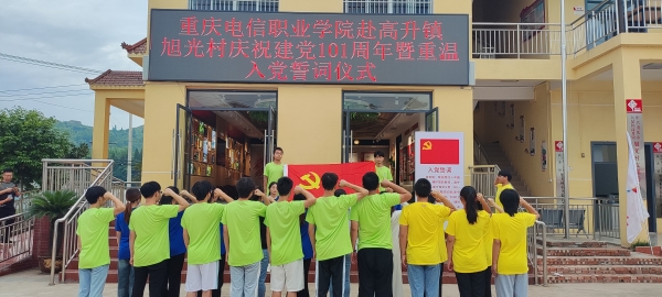 在庆祝建党101周年之际,团队全体师生党员在高升镇旭光村党群服务中心门前重温了入党誓词。全体人员面对着鲜红的党旗,肃穆站立,庄严地举起了右拳,用坚定、有力的宣誓声表达对党无限忠诚的信念。重温入党誓词,使全体党员重温了入党时的满腔激情和崇高追求,重温了入党宣誓时的庄严承诺和坚定决心,大家纷纷表示将不忘初心,砥砺前行,用实际行动喜迎二十大胜利召开。