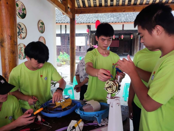 人工智能与电子学院结合实践育人,为高升镇旭光村留守家庭提供义务家电维修服务。文化广场上,村民们纷纷带来了家中有故障的电饭煲、电磁炉、电热水器、取暖器、电烧水壶、电风扇等小家电。志愿者们对需要维修的小家电逐一登记,仔细查找原因,处理故障,同时还向居民宣传安全用电知识、家电使用方法及保养常识。经过师生共同努力,为村民们免费修好电器20余件,得到群众的一致好评。