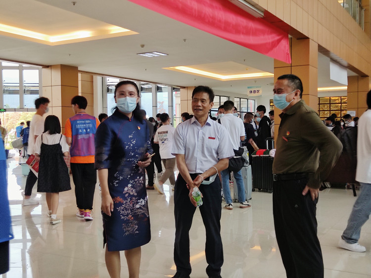 9月1日上午,学校校长曹继建、党委副书记代敏来到我院新生报到现场,与大数据与软件学院冯平院长、田圆副书记、办公室主任张宁、团学负责人覃太林了解当前准备情况以及遇到的问题,并对学院报到现场的各项工作表示了充分的肯定。大数据与软件院长冯平在解除管控得知可以返校的第一时间赶到新生报到现场主持工作,田圆副书记因疫情未亲临现场指导,通过线上直播的方式全程参与报到过程,并积极协调迎新过程中的各种问题。学院专任教师肖道玲在重庆西站耐心地指引着新生和家长前往乘车地点,细致贴心的服务褪去了新生和家长对新环境的陌生感。