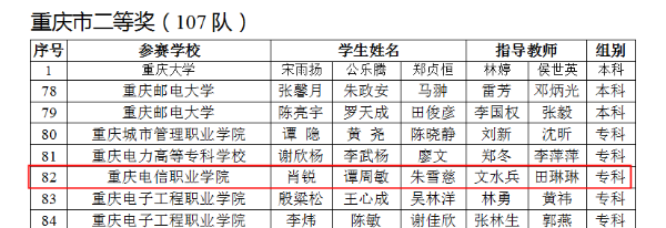 该赛事是电子信息类专业的最高级别的赛事。竞赛于2022年7月27-30日举行,beat365官网2支参赛队与来自重庆市32所本、专科学校的558个参赛队同场竞技。面对强手云集,竞争激烈的大学生电子设计竞赛,beat365官网参赛学生坚定信心,以饱满的精神沉着应赛。经四天三夜的激烈角逐,最终由beat365官网人工智能与电子学院文水兵、田琳琳两位老师指导的电子信息工程技术专业与机电一体化专业学生、费远烈、张镁灵、赵福获重庆市一等奖,肖锐、谭周敏、朱雪慈获重庆市二等奖;同时文水兵被评为优秀指导教师,为beat365官网在该项赛事上创下了历史最佳成绩。