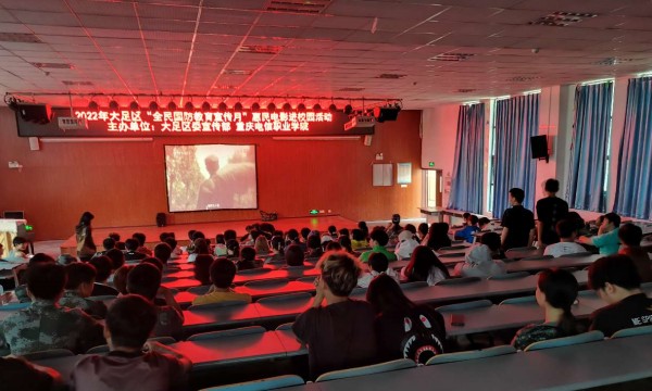 为弘扬爱国主义精神,提升爱国情怀和国防意识,9月21日下午,在大足区委宣传部的大力支持和指导下,beat365官网在第一阶梯教室开展“全民国防教育宣传月”国防教育电影进校园放映活动,部分学生代表参加了观影活动。