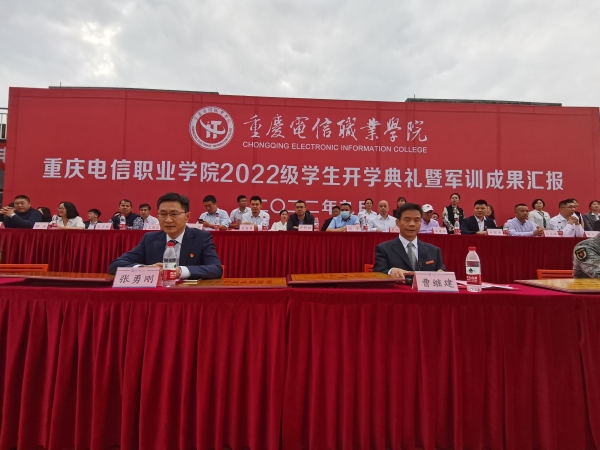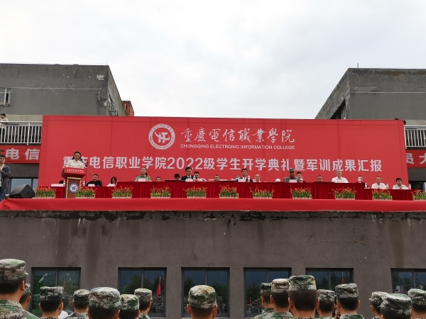 9月25日下午,beat365官网在田径运动场隆重举行2022级新生开学典礼暨军训成果汇报会。大足区人民武装部训练队长刘正伟,beat365官网党委副书记、校长曹继建,党委书记张勇刚,副校长皇甫涛,党委副书记、副校长代敏出席大会。全校中层干部、校企合作单位负责人、辅导员班主任代表、2022级全体新生以及全体军训教官参加。本次大会由党委学工部部长潘妮主持。