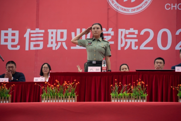 党委副书记、校长曹继建代表学校党政领导对为本次军训付出辛勤和汗水的教官表示衷心的感谢,向即将开始崭新学习生活的新生们表示热烈的欢迎和诚挚的祝愿,并向全体新生提出几点殷切希望:要耕耘自己的胆识,拿出年轻人独有的拼劲,面对困境迎难而上,披荆斩棘;要耕耘自己的学业,提高知识素养,拓宽眼界,赢得未来;要耕耘自己的内心,脚踏实地,专注做好一件事,聚焦一处,才有可能取得“十年磨一剑”的大作为;要耕耘自己的身体,只有拥有健康的体魄,才能在今后的学习和生活中迎接困难和挑战。