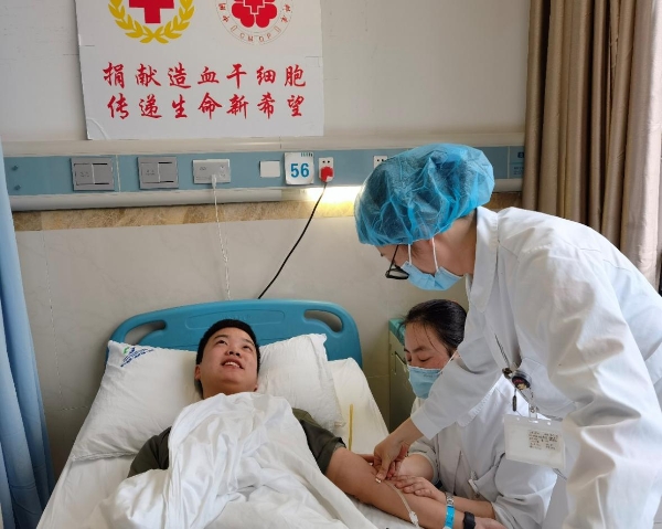 2022年2月21日,根据患者病情和国家管理中心统筹安排,唐延庆住进了重庆医科大学附属第一医院血液科,经过5天的注射动员剂,血液中的干细胞数量达到了采集标准。